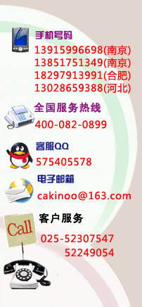 電 話:025-52249054 83032300 83804356 E-mail:cakinoo@163.com 聯系人:余經理 公司地址:江蘇省南京市秦淮區升州路135號